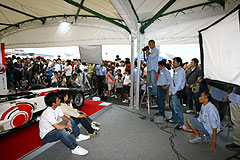 9月に行われた「モータスポーツジャパン2007」の会場において、JRPAは来場者とマシン、ドライバーとの記念写真撮影、プリントなどでイベントに協力しました。入場者や関係者から感謝のお言葉を多数いただき、微力ながらモータースポーツ振興の一助となりました。